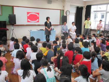 歯科医の先生と,歯科衛生士さんに来ていただいて,歯の健康についての話を聞いたり,歯の磨き方の指導を受けたりしました。