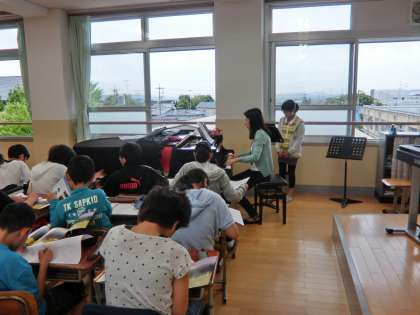 いつもは,「集団の力」で歌唱力を発揮している子どもたちですが,今日は「個の力」をみる日でした。一人一人がピアノの横に順に立ち,緊張した面持ちで歌のテストを受けました。「今の時期にこの歌唱力であれば,これからがとっても楽しみです。」と,井上りえ先生からお褒めの言葉をいただきました。