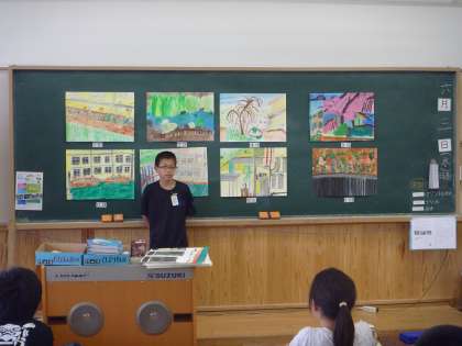 4月からがんばって描いてきた,きれいになった校内の風景画が完成しました。今週は,その鑑賞をしました。