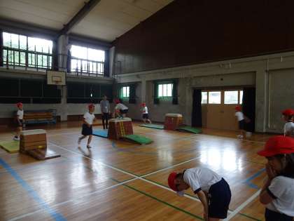体育では,跳び箱運動をしています。3年生の技として,開脚跳び・台上前転・かかえ込み跳びにチャレンジしています。また,1つの技を極めようと,高さに挑戦したり,踏切板と跳び箱の間に板を入れて,距離に挑戦したりする子どももいます。友だちと励まし合いながら,跳び箱運動を楽しんでほしいと思います。