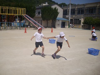 時には2人組になって協力してゲームをしています。上級生が下級生を助けてあげたり、下級生に譲ってあげたりする場面も見られ、縦割り集団の良さが出ているなと感じています。
