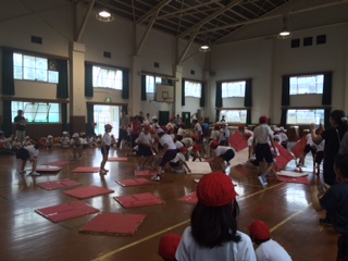 今日は,あいにくのお天気で,途中から場所を体育館に移しました。