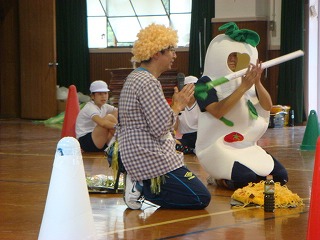 リレーでは焼きそばマンと野菜マンが登場し、子どもたちからは歓声があがりました。ソースとマヨネーズをバトンにしてみんなで力を合わせ、無事に届けることができました!