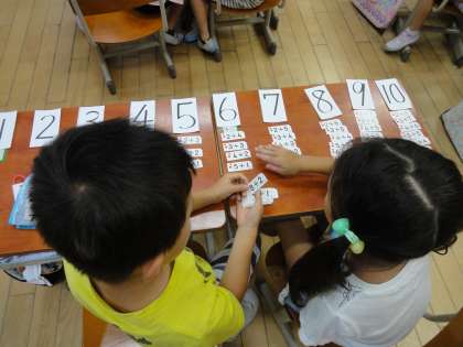 算数科の学習ではたしざんの復習をしました。計算カードを使い,一人で何度も計算したり,ペアで仲間集めをしたりしました。初めての計算カードに,子どもたちは嬉しそうで,何度も何度も繰り返し練習をしていました。これからも隙間の時間を使って,計算カードで計算の練習をしてほしいと思います。