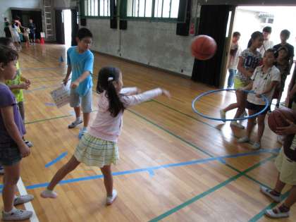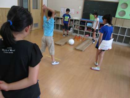 これは,1年生〜6年生の子どもたちが数名ずつで1つのグループを作り,様々な活動をするという,「縦割りオリエンテーリング」です。