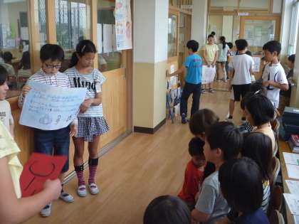 みんなで案を出し合い,準備をしてきた金閣なかよし探検隊当日。5年生は”全校のみんなを楽しませるために”がんばりました。