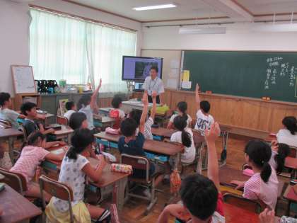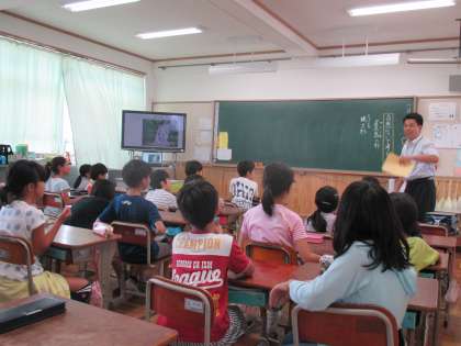 パワーポイントで屋久島にある縄文杉の写真を見ながら,自然の大切さについて考えました。
