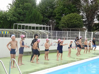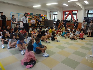 準備体操では「勇気100%」を、模範演技としてみんなの前で踊りました。ちょっと恥ずかしそうでしたが、元気に体を動かしました。