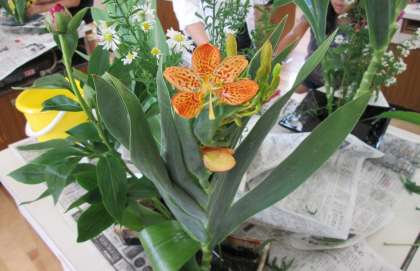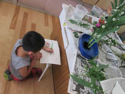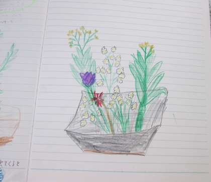 今回は「ヒオウギ(桧扇)」という花を花材として生けましたが,今までに生けたことのないめずらしい花でした。がんばって生けた後は,ノートに自分の作品をスケッチしました。