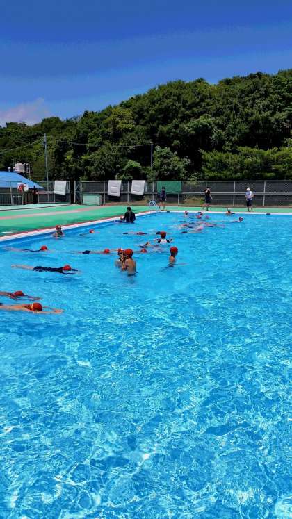 先週までは学校での水泳学習も曇り空や気温の低い日が続いていましたが,今日はとっても気持ちよさそうです。