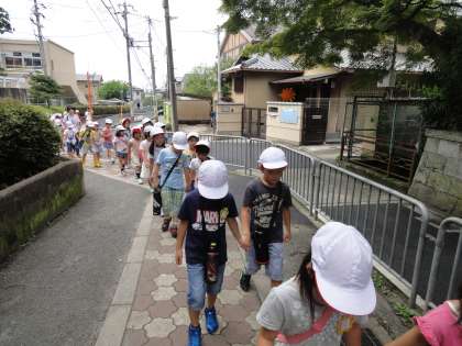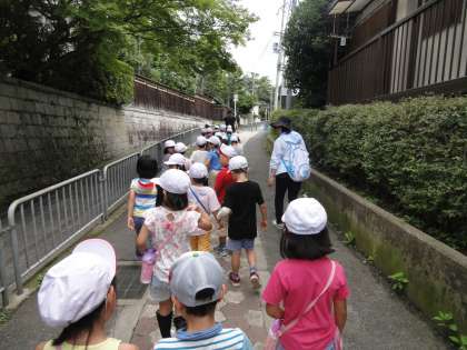 生活の学習で,金曜日に晴れの日の様子を見に探検に出かけました。雨の日とはどんな違いがあるのか,子どもたちはとても探検を楽しみにしていました。朝は,雲が多かったのですが,探検に出かける頃にはお日様が顔を出してくれました。