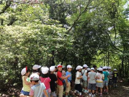 初めて衣笠山に登りましたが,たくさんの植物やキノコ,虫を発見して子どもたちは大喜びでした。ぬかるんだ場所もありましたが,子ども同士で声をかけあいながら,上手に山を登り下りすることができました。
