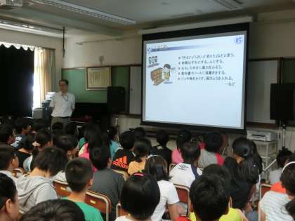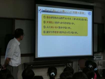 今日の5時間目に,北警察署の方に来ていただき,非行防止教室を行いました。「ちょっとくらいという気持ちをなくそう。」「スマホやケータイ,ポータブルゲーム機の危険性」「いじめは犯罪である。」などなど,子どもたちの身の回りで実際に起こっている事例を出しながら,具体的なお話をしていただきました。子どもたちは,真剣に話を聞いていました。