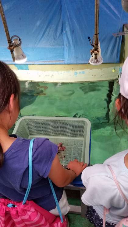ペンギンを触らせてもらったり,バックヤードで魚のえさやりをさせてもらったりと,普段なかなかすることのできない体験をさせていただいています。ペンギンはとってもかわいかったです。