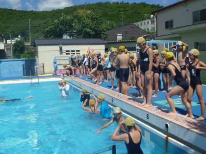 そんな中,最終の検定を行いました。今まで25m泳げなかった子どもたちの多くが,続々と合格し,力をはっきしていました。めだか教室に参加する子どもたちは,夏休みに25m泳げるよう,がんばってほしいです。