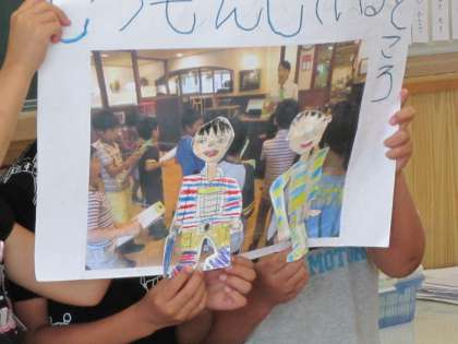 金閣のまちを探検し,様々なお店や場所の「ひみつ」を見つけ,それをみんなに紹介する授業でした。たくさんのひみつを知った後,「金閣のまちの人が暮らしやすいようにしているお店が多い。」や「外国からのお客さんにおもてなしができている。」などの感想が出ました。子どもたちは,金閣のまちのすてきな所をいろいろ知ることができたようです。