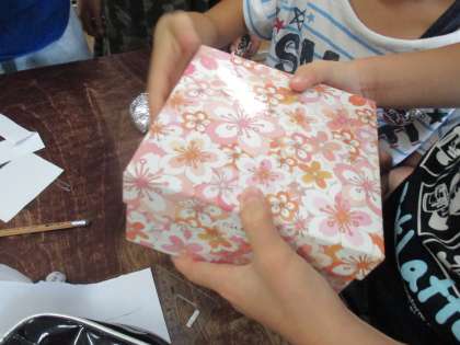 今回は,折り紙で三角じょうぎを作ったり,紙とクリップでヘリコプターのようなものを作ったりしました。最後には,ビー玉とアルミホイルをつかってたまごのような動きをするものを作りました。