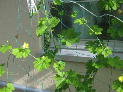 4年生が育てているツルレイシのツルがぐんぐん伸びて,緑のカーテンが出来上がりました。