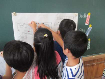 社会の学習で,学校では火事にそなえてどのような設備があるのか調べる学習をしました。