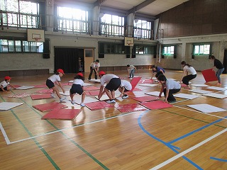 にじの子学級の親睦会を行いました。オセロとドッチビーをして、みんなで元気に体を動かしました。子どもたちチームと大人チームに分かれて対戦し、盛り上がりました。