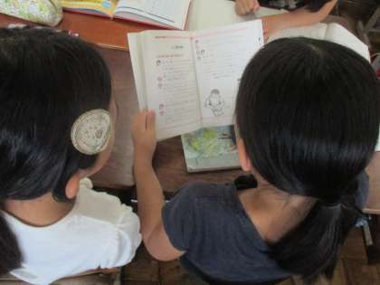 わからない言葉を辞書で調べたり,友達と協力したりして,着々と準備が進んでいます。