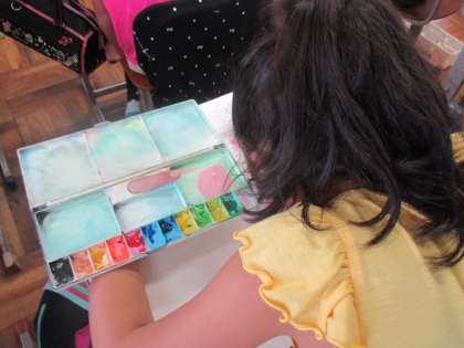 また,下描きを終えた子どもから絵の具を使って彩色していきました。