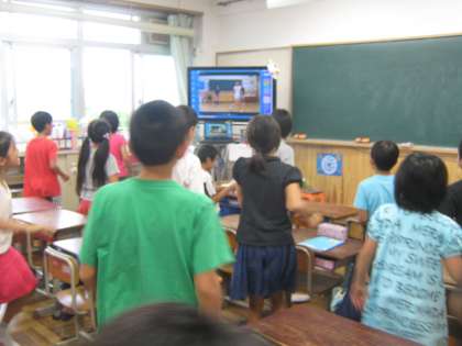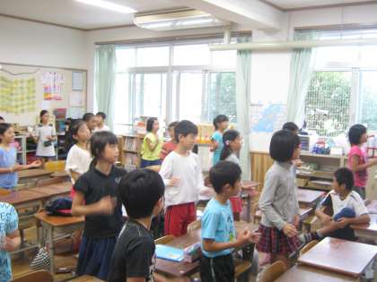 教室で全校ダンスの練習をしました。