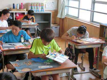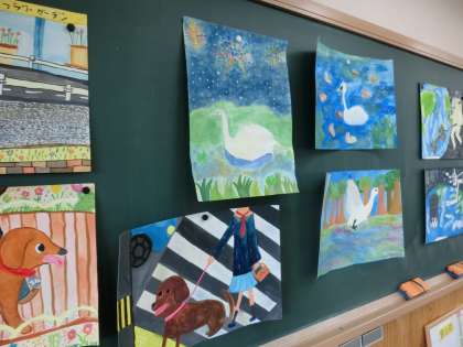 多くの子どもたちが,今週をめどに作品を完成させています。来週の自由参観の時には,教室や階段の壁面に掲示できると思いますので,どうぞお楽しみに。