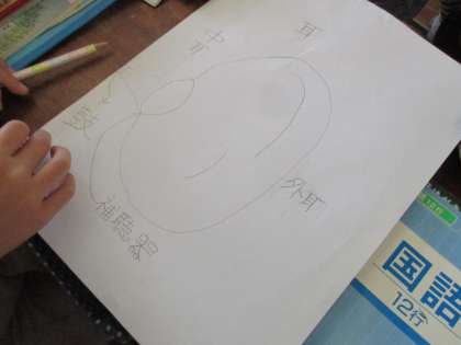 できた子どもは黒板に張って後ろからの実際に見てみて,見え方を確認していました。