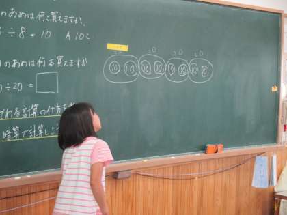 算数では,(何十)でわる計算の仕方を考え,暗算で計算する学習をしました。
