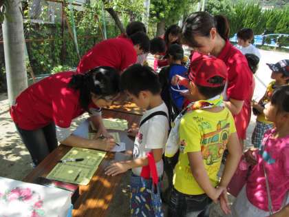 24問のクイズが終わった後には表彰式が行われ,早くビンゴになった子どもは表彰状をいただきました。他の子どもたちは,何問正解したかを記した認定証をいただきました。