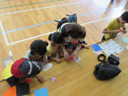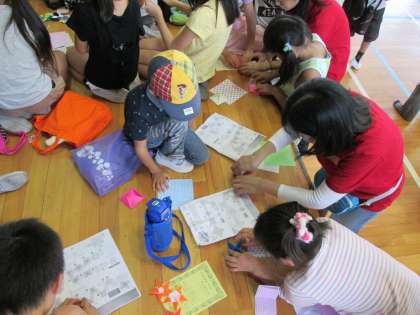 花のこまは,ちょっと難しかったようですが,PTA本部の方や保護者の方に教えていただきながら,がんばって作りました。