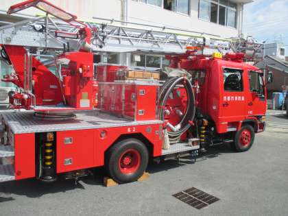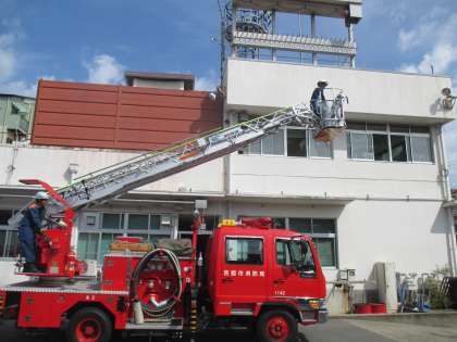 北消防署では,実際にはしご車を動かしているところを見せていただきました。