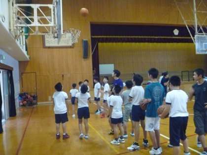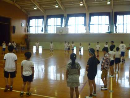 今日は衣笠中学校に,バスケットボール部の見学に行ってきました。卒業生のお兄さん・お姉さんのがんばる姿を憧れの眼差しで見つめる子どもたち。ウォーミングアップに参加させてもらったり,小学校より高さの高いゴールにシュートをうたせてもらったりもしました。