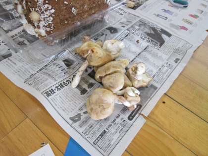 椎茸の菌床には,配られた時点ですでに椎茸が生えているものもありました。でも,これから手入れをしていく中で生えてくるものの方がおいしいそうです。生えてくるのが楽しみです。