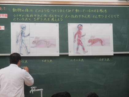 理科の学習で,うさぎと人の骨や筋肉を比較し,類似点と相違点を考える学習をしました。