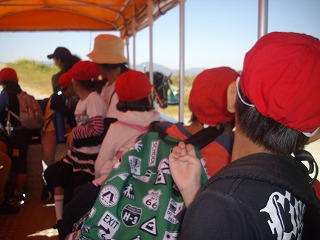 トロッコ亀岡駅に到着した後、京馬車に乗りました。ゆっくりとしたスピードで進むので、ちょっとこわいなと心配していた子どもも安心して楽しんでいました。馬が歩く「パカパカ」という音も心地よく、子どもたちは「お馬さんがんばれ〜」と声をかけていました。