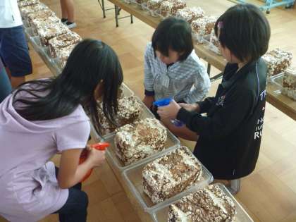 先週の木曜日から栽培しているしいたけが,すくすく育っています。子どもたちは毎日,霧吹きで水をやり,おいしそうなしいたけを採れることを楽しみにしています。