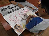図工の時間に、遠足の絵を描きました。絵を描く前に写真を見ながら遠足を振り返りました。「たくさん電車に乗ったね」「お馬さんに触ったよ」などとそれぞれ思い出しながら、自分が一番印象に残ったことを絵にしました。自分や電車、馬車だけでなく、風が吹いて揺れている様子を表現している子どももいました。