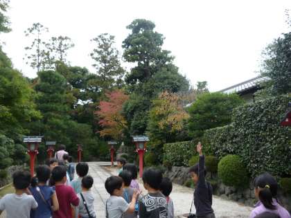 生活科の学習で,7月に見た町の様子と変わっているところを探しに,町探検に行きました。木々の様子やお店の様子も、すっかり秋に変わっていました。