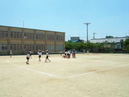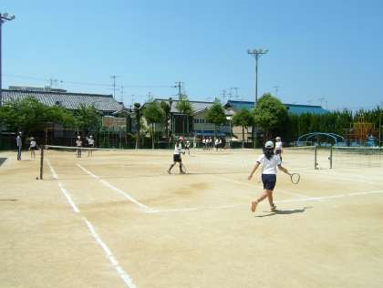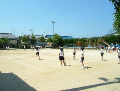 毎週土曜日の運動場では,「部活テニス」の活動をしています。
