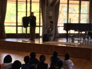 5年 長期宿泊学習〜寝袋の説明を聞いています〜