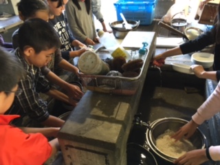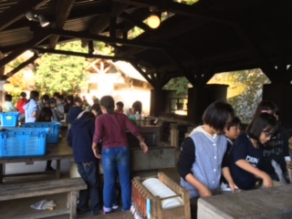 今日の夕食は,野外炊事です。カレーライスを作ります。みんなで協力して,おいしいカレーができますように。