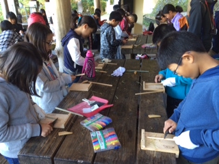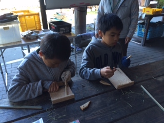 午前中のプログラムは,「竹箸づくり」です。竹を小刀で削って,やすりをかけて,自分だけの竹箸を作ります。節があるので,苦労している子どもたちもいましたが,自分で作ったお箸,持って帰って大切に使ってほしいです。