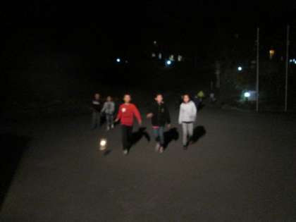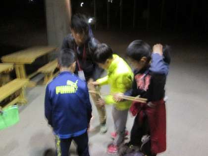今日の夜のプログラムはナイトハイクです。夜の山道を歩きます。「こわい〜。」と言っていた人もいましたが、グループで協力しながら、全員無事帰ってくることができました。