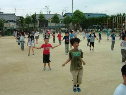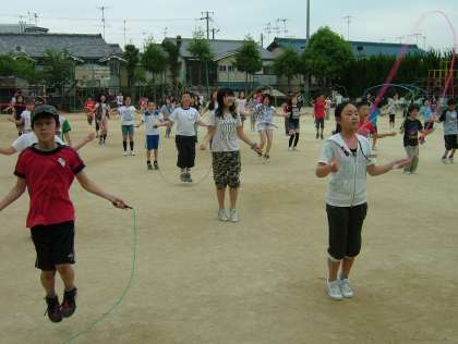また,同時刻に運動場では縄跳び,体育館ではダンスをおこない体力づくりをしています。