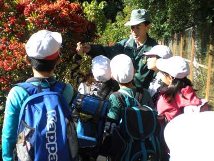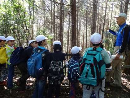 衣笠山に登り,キノコや木の実・動物のいた痕跡など教えていただき,学校の近くにたくさんの生きものがいることに,子どもたちは驚いていました。