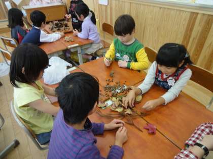 生活科の学習では,衣笠山で採ってきたものを使って,あきあそびを考えました。「どんな遊びができるかなあ。」と,色々と思考錯誤しながら楽しく遊ぶことができました。また,自分のおすすめの遊び方をクラスのみんなに紹介しました。今度は,紹介してもらった遊びなどを活かして,更に楽しくあきあそびができたらなと思います。