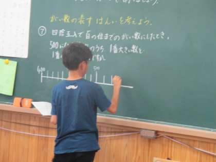 子どもたちは,数直線を使って考え,どのように考えたらわかりやすいかを話し合っていました。