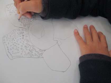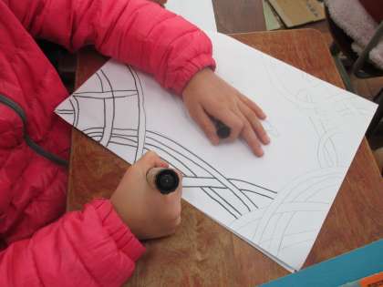 今日は下書きを板に写す活動をしました。